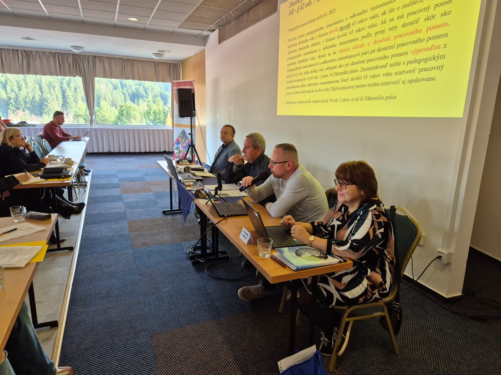 V dňoch 13.-14. novembra 2025 sa stretli na spoločnom rokovaní predsedovia ZO pôsobiacich na školách a školských zariadeniach v krajoch Banská Bystrica, Trenčín, Žilina. Po minuloročnej dobrej skúsenosti sme sa vo Výbore Rady ZO opäť rozhodli usporiadať jesenné stretnutia predsedov ZO v rámci našej Rady ZO spoločne, nie po jednotlivých krajoch.