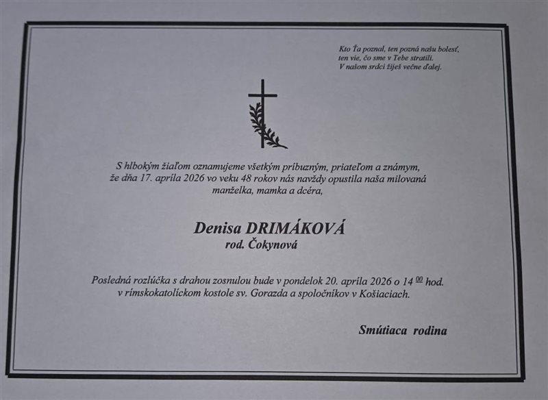 So smútkom a žiaľom oznamujeme, že vo veku 48 rokov odišla naša dlhoročná aktívna odborárka, vedúca celoslovenskej sekcie zamestnancov centier voľného času, bojovníčka za lepšie pracovné podmienky školských zamestnancov Deni Drimáková. Lúčime sa.